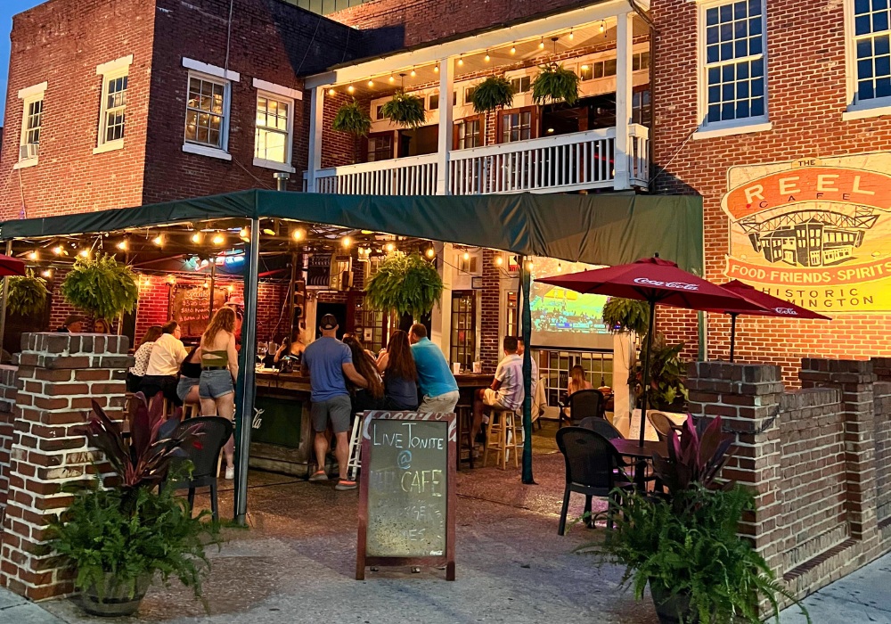 The Reel Cafe is the place to be when the sun goes down. Our rooftop bar and stage overlook the stunning Cape Fear River, making it the perfect spot to sip a drink and catch a sunset. Down in the courtyard, enjoy cocktails under the night sky while listening to live performances from local & regional bands. Feeling bold? Head to our second-floor bar and lounge, where DJ Be hosts “Wilmington’s Best Karaoke” every Friday and Saturday night starting at 9 p.m. With live music, DJs, and karaoke, we keep the party going strong all night long.
